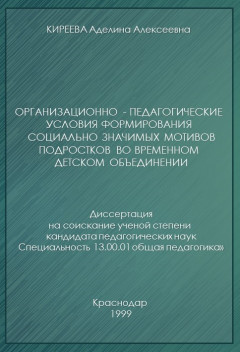 ОРГАНИЗАЦИОННО - ПЕДАГОГИЧЕСКИЕ УСЛОВИЯ ФОРМИРОВАНИЯ СОЦИАЛЬНО ЗНАЧИМЫХ МОТИВОВ ПОДРОСТКОВ ВО ВРЕМЕННОМ ДЕТСКОМ ОБЪЕДИНЕНИИ