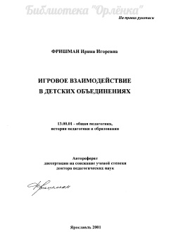 Опубликовано пт, 11/21/2025 - 16:32 пользователем adminАвтореферат. ИГРОВОЕ ВЗАИМОДЕЙСТВИЕ В ДЕТСКИХ ОБЪЕДИНЕНИЯХ