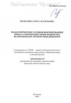 Опубликовано пт, 11/21/2025 - 16:33 пользователем adminАвтореферат. ПЕДАГОГИЧЕСКИЕ УСЛОВИЯ ФОРМИРОВАНИЯ ОПЫТА САМОПРЕЗЕНТАЦИИ ПОДРОСТКА ВО ВРЕМЕННОМ ЛЕТНЕМ ОБЪЕДИНИИ