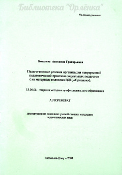 Автореферат. Педагогические условия организации непрерывной педагогической практики социальных педагогов ( на материале колледжа ВДЦ «Орленок»).